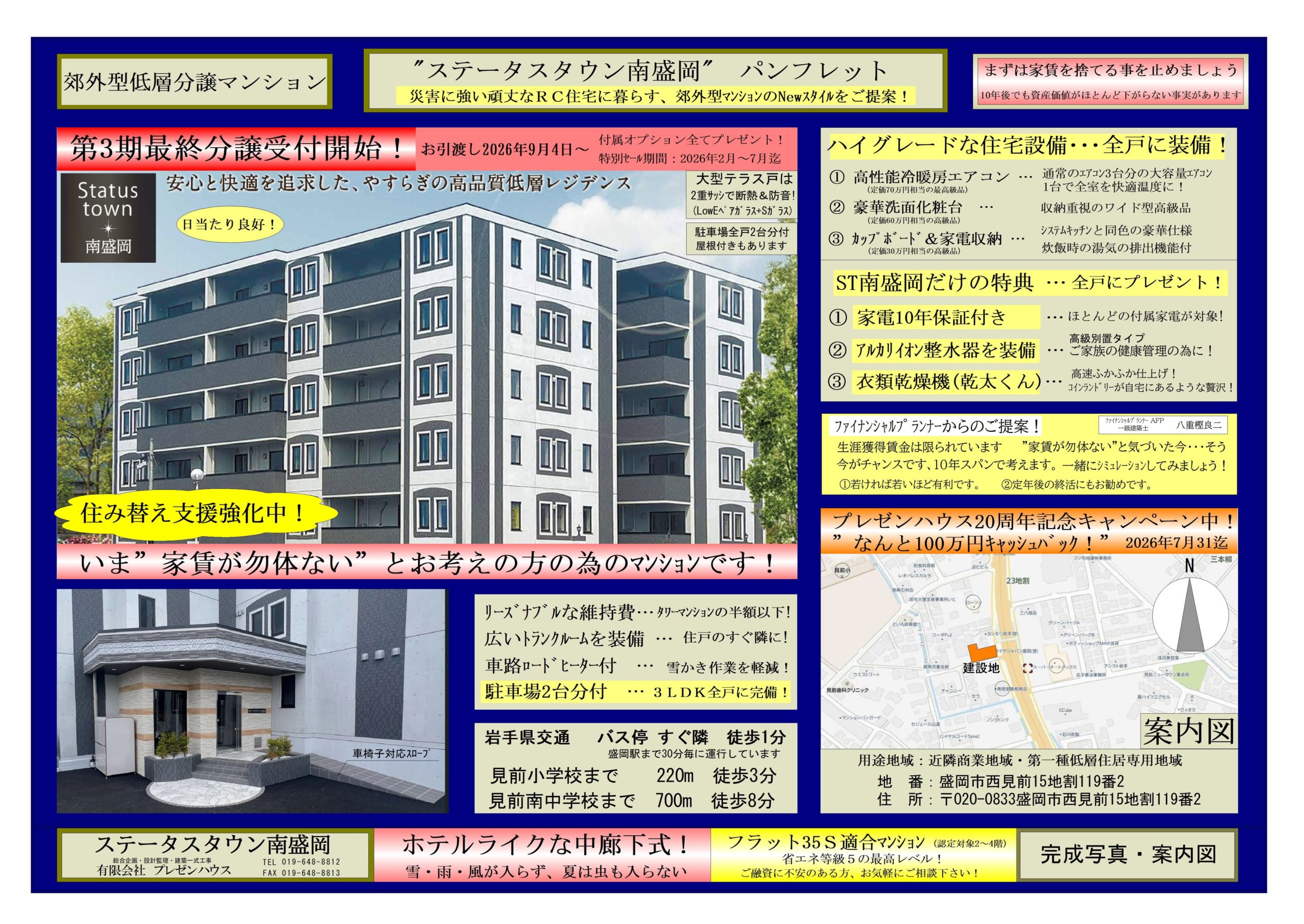 ステータスタウン南盛岡は、市内では希少な「完全屋内型・中廊下」を採用。エントランスを一歩入れば、そこは雪も風も届かない、ホテルのような静寂と暖かさに包まれた別世界です。
